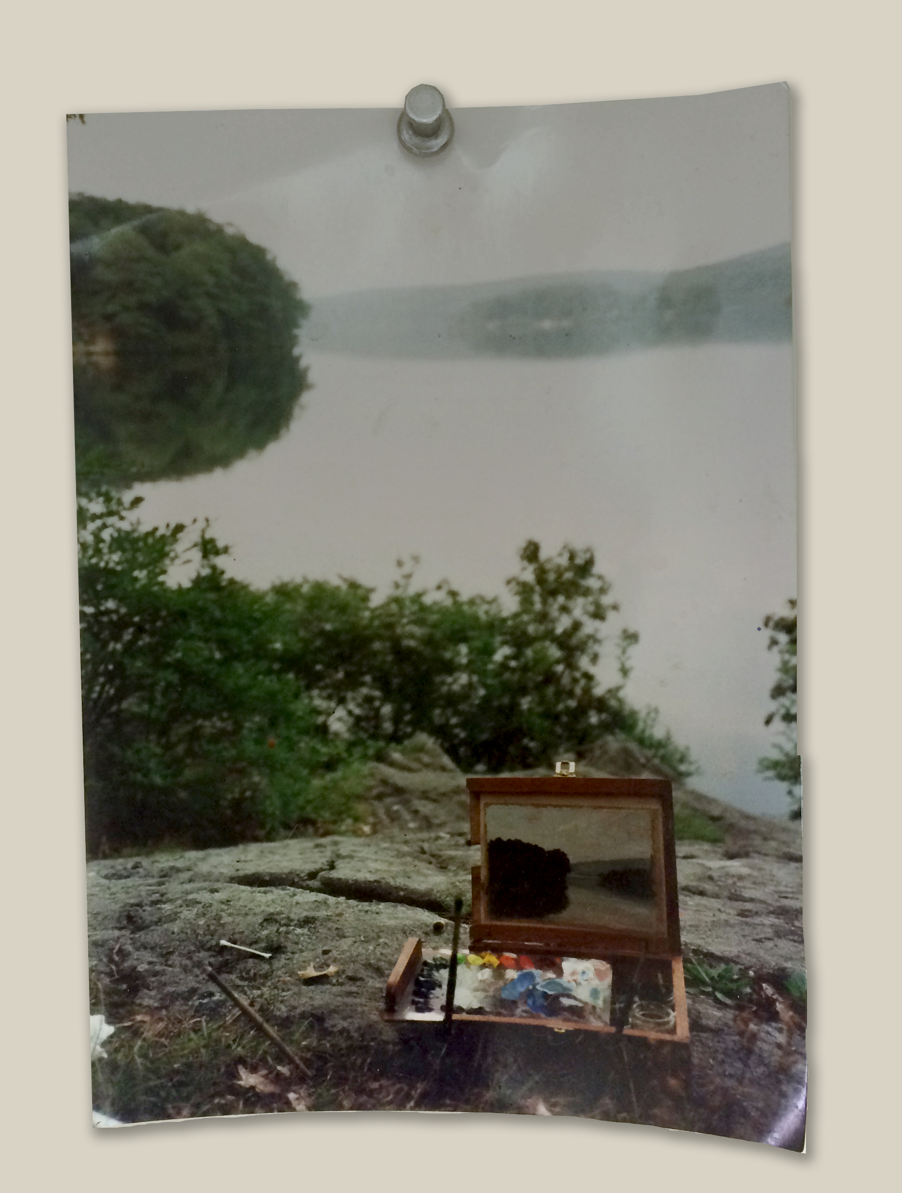 On the left is a photo of my pochade box, all set up for painting, in Harriman State Park, in NY.
