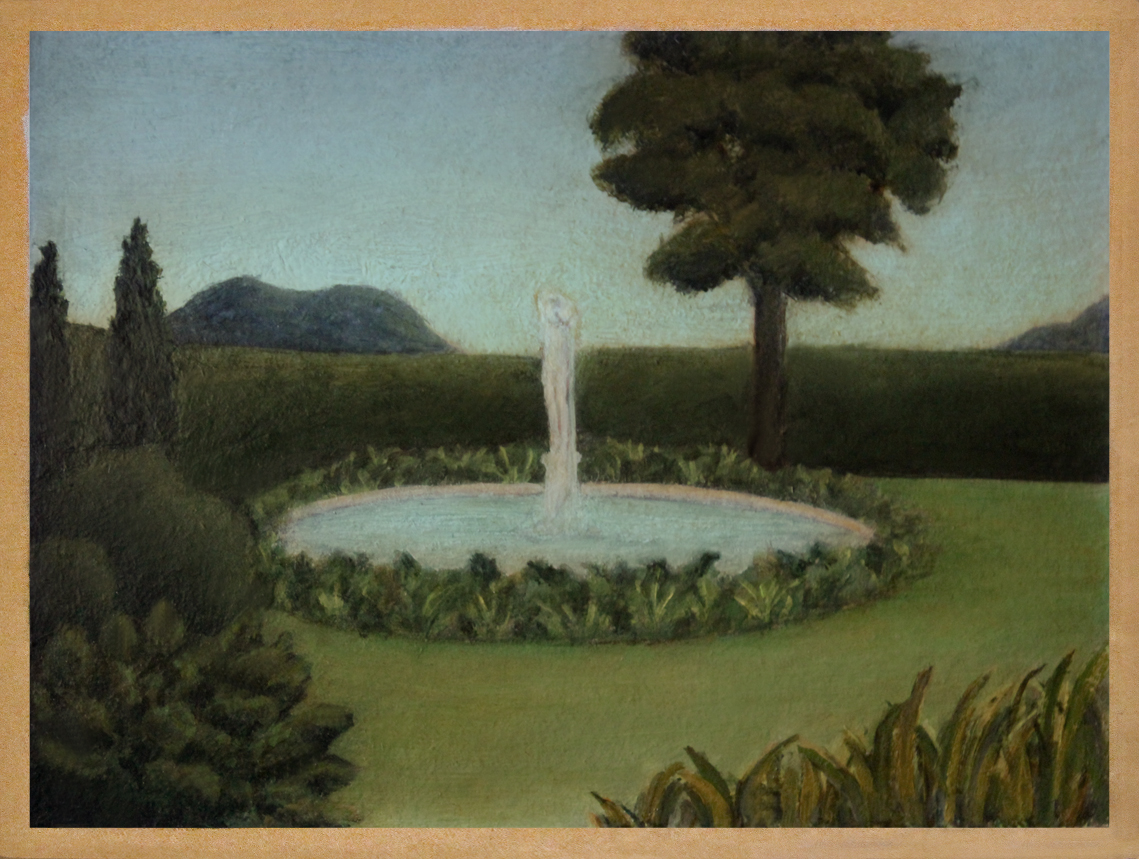 Here are some of my intimate garden landscape paintings from the 90’s. They are all quite small, oil paint on board. My landscape environments are a combination of photographs I’ve taken, places I have been, places I wish to be, and my imagination.