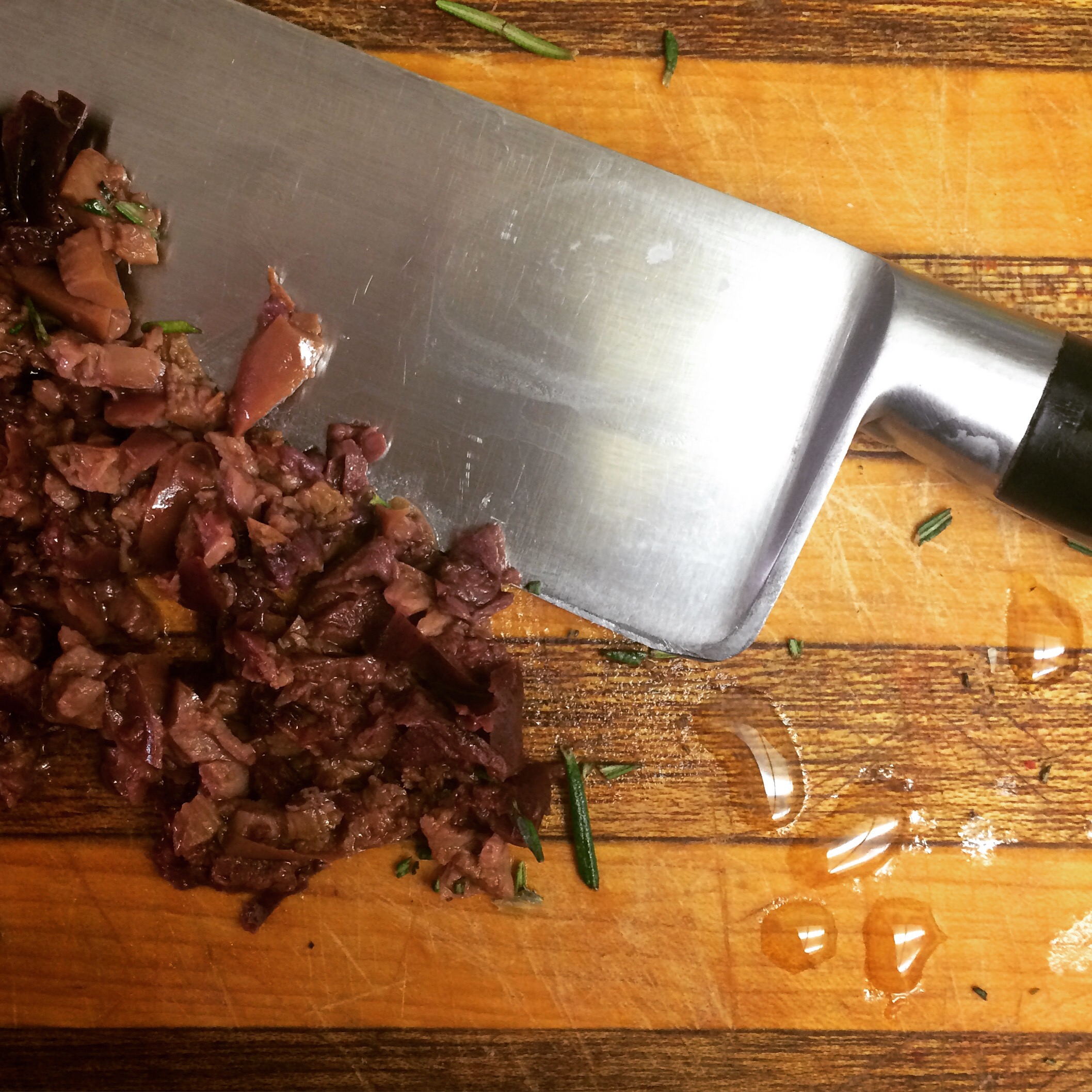 Added the chopped fresh rosemary and (4) cubes of the TJ’s frozen garlic to the olive oil. Let sit a bit. Next time, overnight.