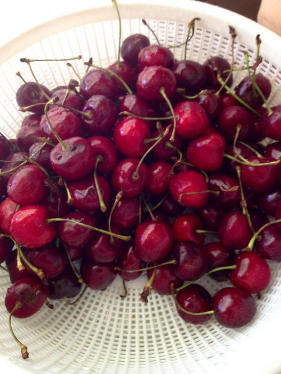 Close up of the pitted cherries: