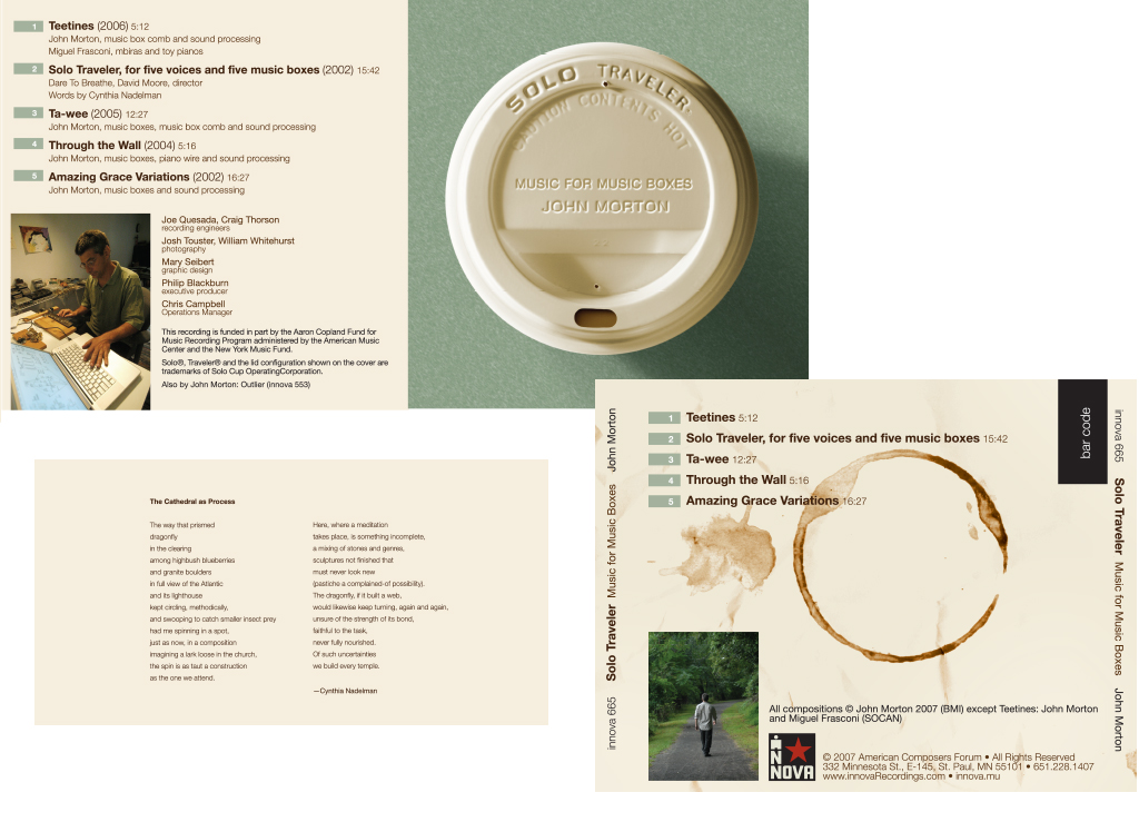 Collaborated with composer John Morton to design and layout cd cover art. You can listen to some samples here from his cd, Solo Traveler.